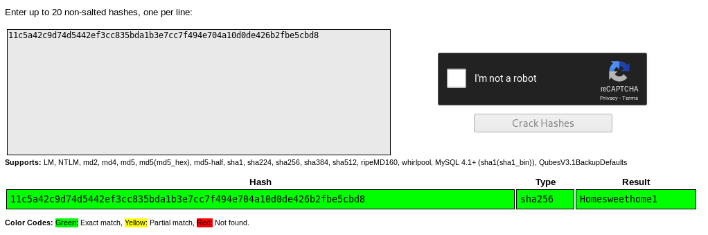 With a hash found, I went to an online-hashcrack-website to see if it’s a known hash.